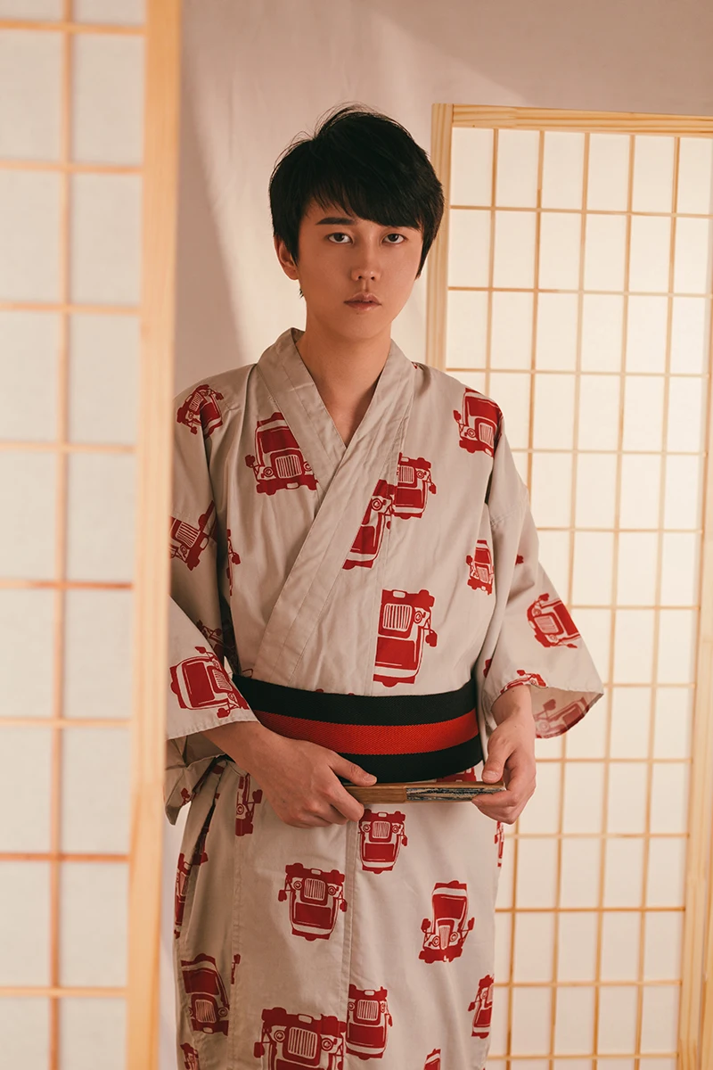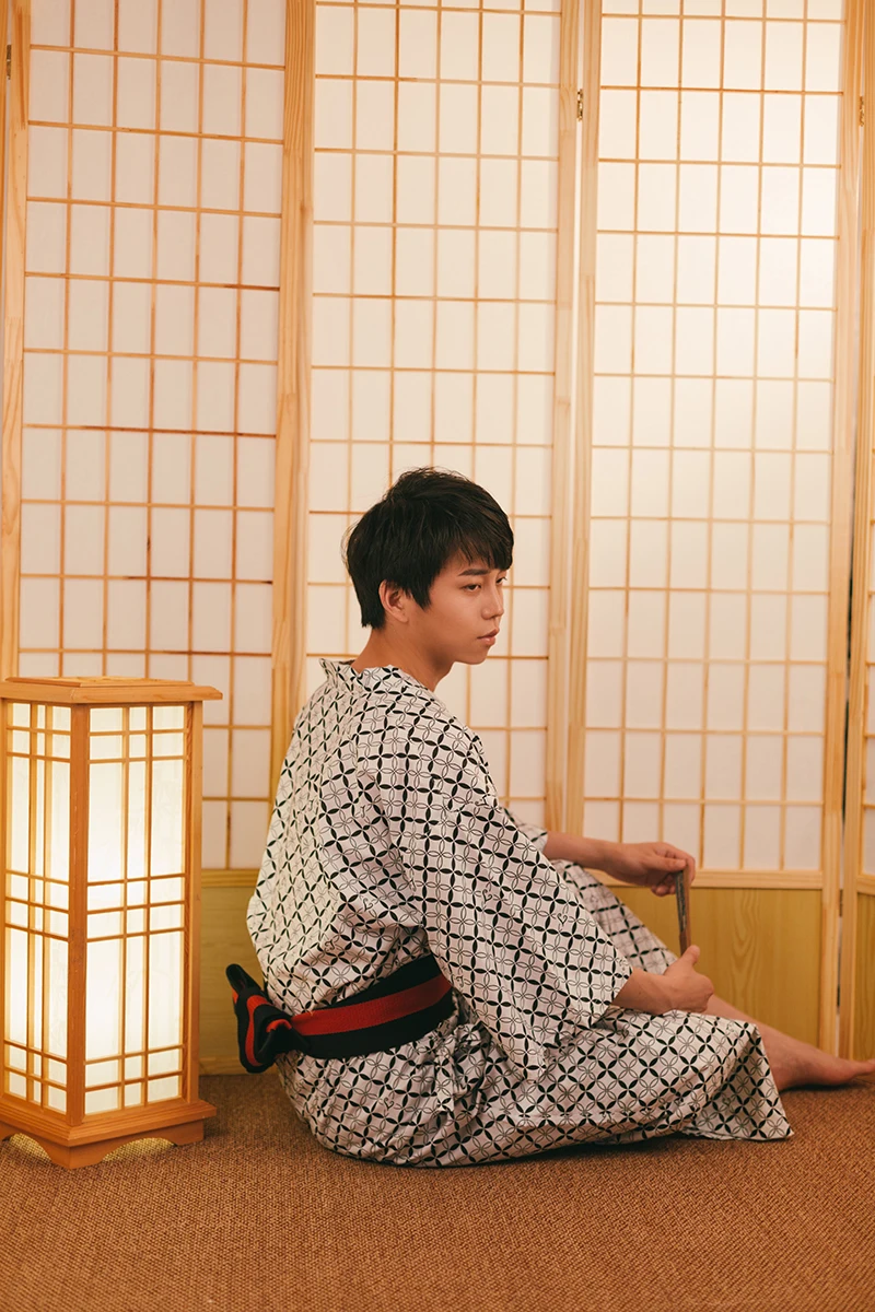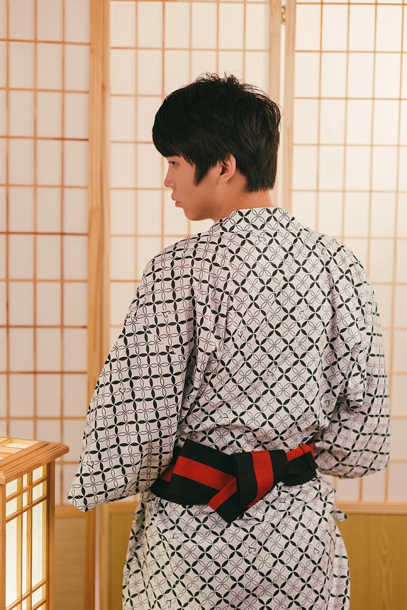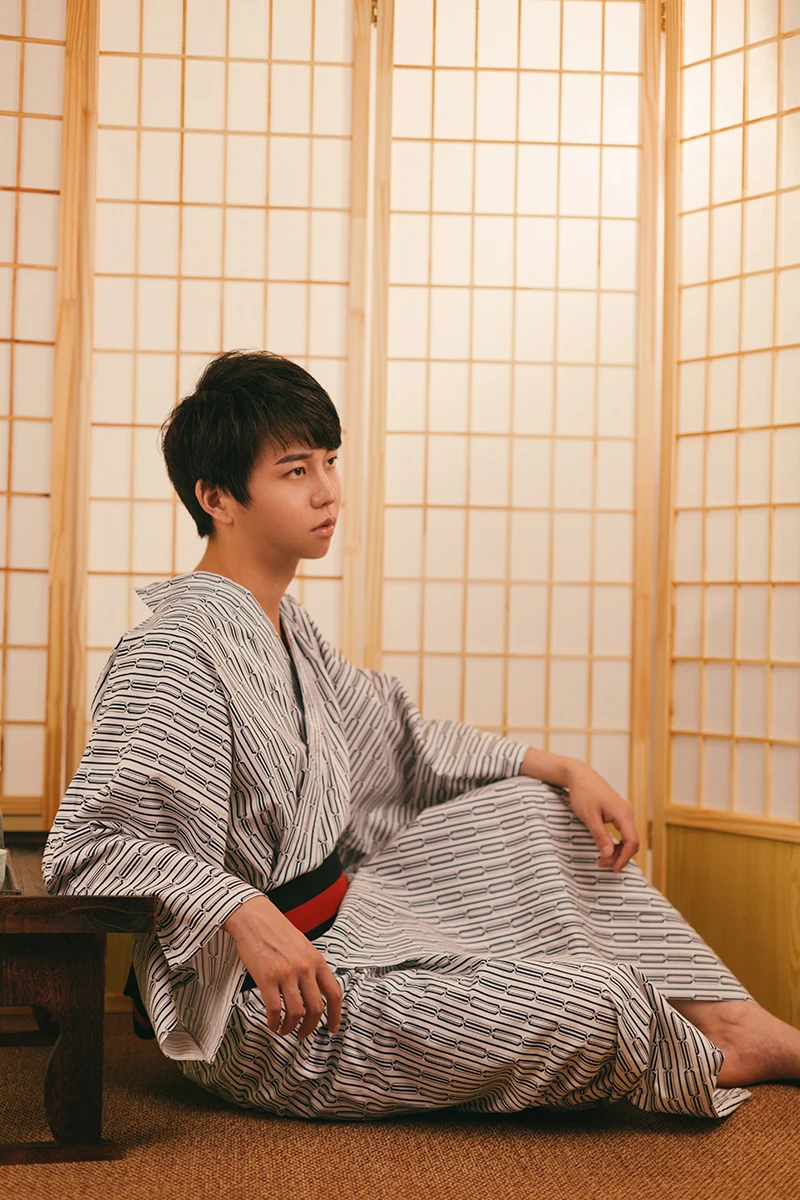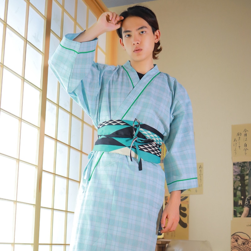 Japan Kimono suit Male Traditional Kimono with Obi Belt Men's Cotton Bath Robe Yukata Male Kimono Sleepwear cosplay Costumes A60610