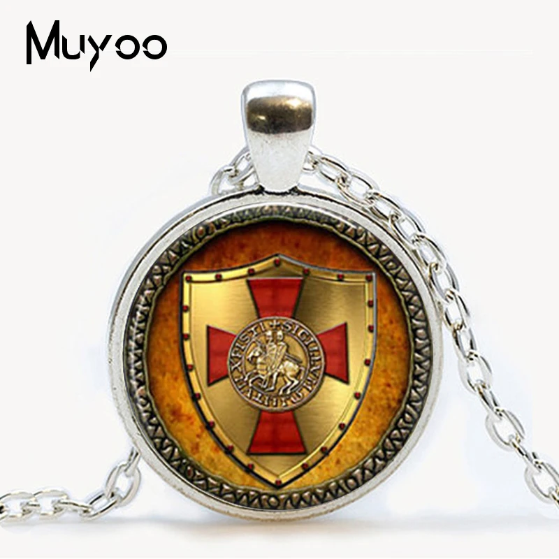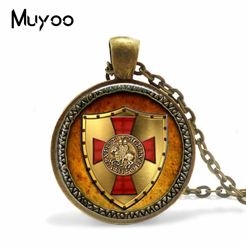 The Knights Templar Pendant jewelry Vintage Religious Knight Spirit Style Glass Cabochon Necklace Mens Gifts