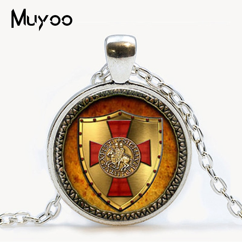 The Knights Templar Pendant jewelry Vintage Religious Knight Spirit Style Glass Cabochon Necklace Mens Gifts quantity